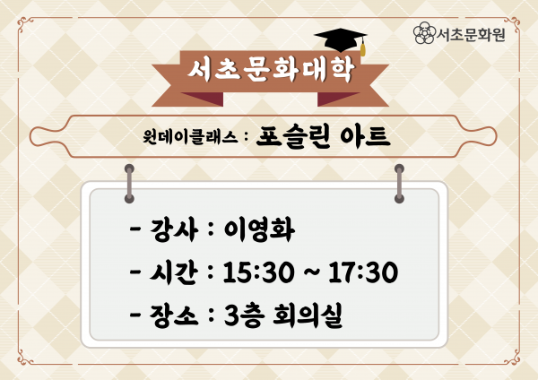 원데이 클래스 - 포슬린 아트 (08/25 ~ 08/25) 페이지 정보 작성자 서초문화원 작성일21-10-01 13:05 조회1,116회 댓글0건 이전글 다음글 목록 본문 원데이 클래스 - 포슬린 아트 댓글목록 등록된 댓글이 없습니다. 이전글 다음글 목록