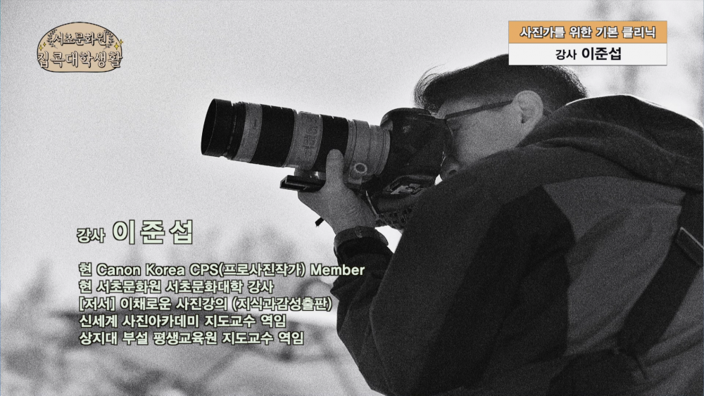 서초문화대학 집콕대학생활 온라인 원데이클래스 '사진가를 위한 기본 클리닉' (강사 이준섭) 페이지 정보 작성자 서초문화원 작성일20-06-19 20:55 조회11,041회 댓글0건 관련링크 이전글 다음글 목록 본문 댓글목록 등록된 댓글이 없습니다. 이전글 다음글 목록