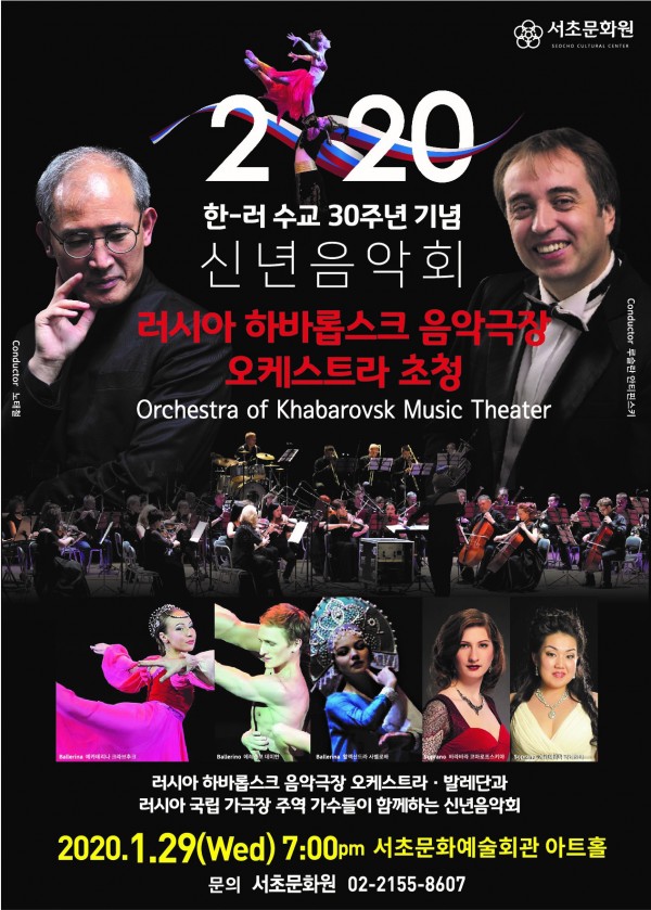 제17회 수요열린음악회 <2020 신년음악회> 페이지 정보 작성자 서초문화원 작성일20-01-16 16:31 조회6,777회 댓글0건 관련링크 이전글 다음글 목록 본문 행사명 제17회 수요열린음악회 <2020 신년음악회> 일시 2020년 1월 29일(수) 19:00 장소 서초문화예술회관 아트홀 공연정보 신종 코로나바이러스 위기 경보가 '주의'에서 '경계'로 격상됨에 따라, 서초구청에서 서초문화예술회관 휴관이 결정되었습니다.모두의 안전을 위해 내린 결정에 대해 관객 여러분들의 많은 양해 부탁드립니다.본 공연에 많은 관심과 성원을 보내주셔서 감사합니다. 언론보도 이전글 다음글 목록
