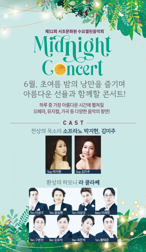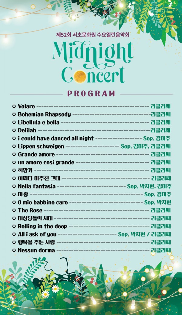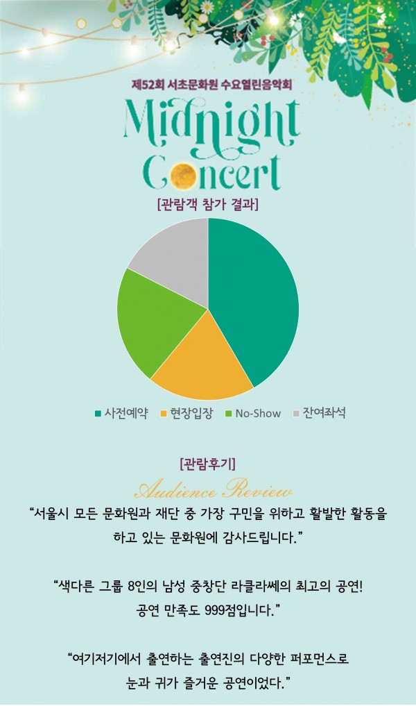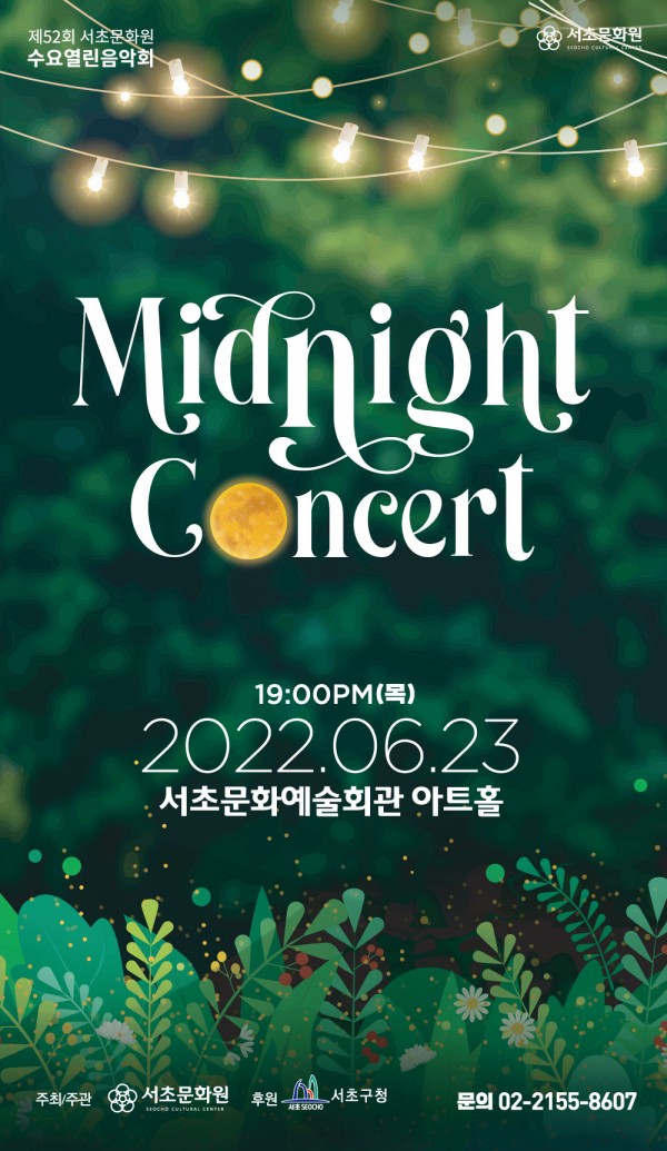 제52회 수요열린음악회 <Midnight Concert> 페이지 정보 작성자 서초문화원 작성일22-06-28 09:06 조회4,294회 댓글0건 관련링크 이전글 다음글 목록 본문 행사명 제52회 수요열린음악회 일시 2022.06.23.(목) 19:00 장소 서초문화예술회관 아트홀 공연정보 언론보도 이전글 다음글 목록