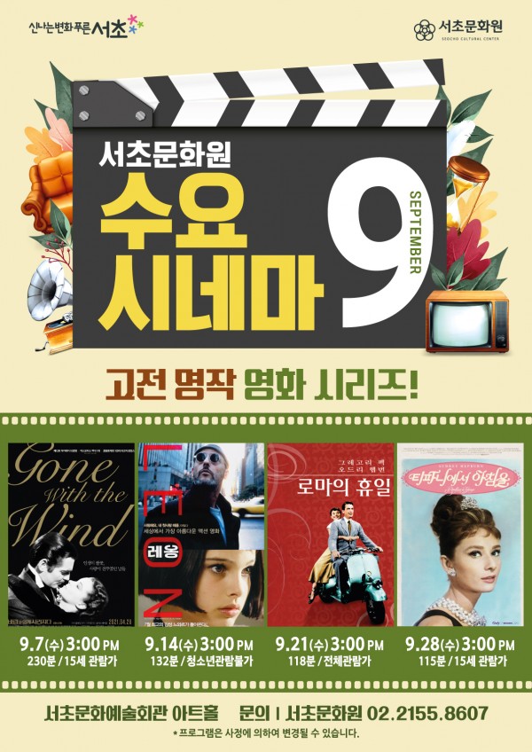 2022.09 수요시네마 <고전 명작 영화 시리즈!> 페이지 정보 작성자 서초문화원 작성일22-08-31 15:56 조회4,666회 댓글0건 관련링크 이전글 다음글 목록 본문 행사명 2022.09 수요시네마 <고전 명작 영화 시리즈!> 일시 2022.09 장소 서초문화예술회관 아트홀 공연정보 언론보도 이전글 다음글 목록