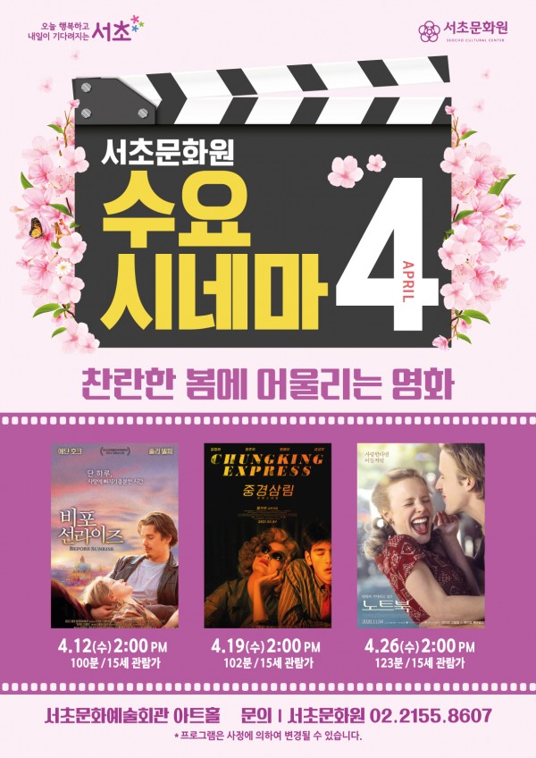 2023.4월 수요시네마 '찬란한 봄에 어울리는 영화' 페이지 정보 작성자 서초문화원 작성일23-03-20 09:04 조회4,192회 댓글0건 관련링크 이전글 다음글 목록 본문 행사명 2023.4월 수요시네마 '찬란한 봄에 어울리는 영화' 일시 2023.04 장소 서초문화예술회관 아트홀 공연정보 언론보도 이전글 다음글 목록