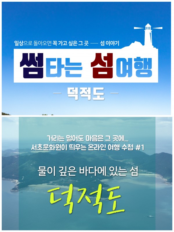 썸타는 섬여행 '덕적도' 페이지 정보 작성자 서초문화원 작성일20-07-13 14:09 조회3,515회 댓글0건 관련링크 이전글 다음글 목록 본문 행사명 썸타는 섬여행 '덕적도' 일시 서초문화원이 띄우는 온라인 여행수첩 #1 장소 물이 깊은 바다에 있는 섬 / 덕적도 공연정보 ▶보러가기http://pf.kakao.com/_tprxlT/52658410 언론보도 이전글 다음글 목록