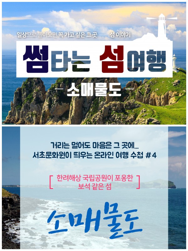 썸타는 섬여행 '소매물도' 페이지 정보 작성자 서초문화원 작성일20-09-14 17:46 조회3,515회 댓글0건 관련링크 이전글 다음글 목록 본문 행사명 썸타는 섬여행 '소매물도' 일시 서초문화원이 띄우는 온라인 여행수첩 #4 장소 한려해상 국립공원이 포옹한 '보석 같은 섬' / 소매물도 공연정보 ▶보러가기http://pf.kakao.com/_tprxlT/56151589 언론보도 이전글 다음글 목록