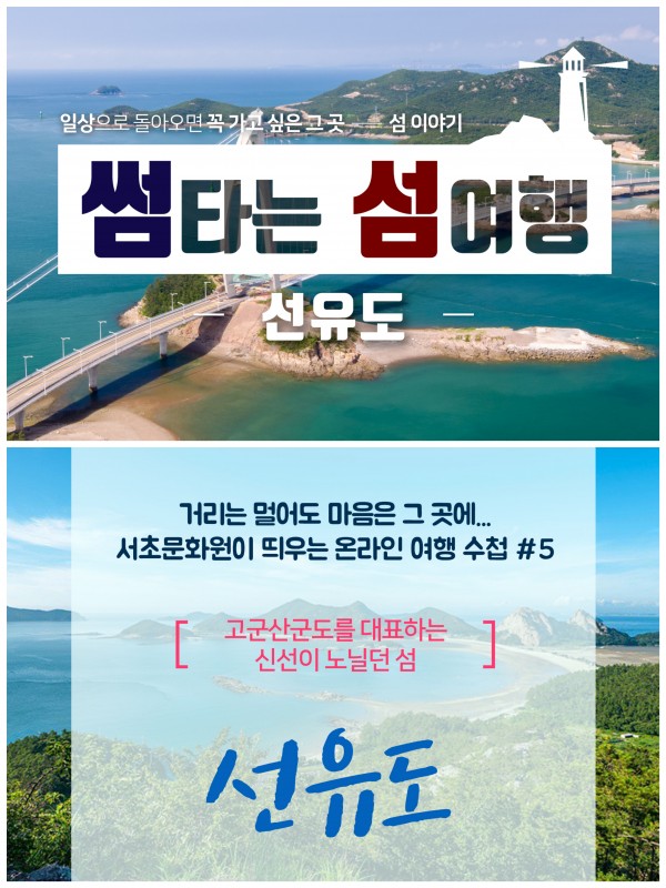 썸타는 섬여행 '선유도' 페이지 정보 작성자 서초문화원 작성일20-10-16 16:34 조회3,452회 댓글0건 관련링크 이전글 다음글 목록 본문 행사명 썸타는 섬여행 '선유도' 일시 서초문화원이 띄우는 온라인 여행수첩 #5 장소 고군산군도를 대표하는 신선이 노닐던 섬 '선유도' 공연정보 ▶보러가기http://pf.kakao.com/_tprxlT/58071934 언론보도 이전글 다음글 목록
