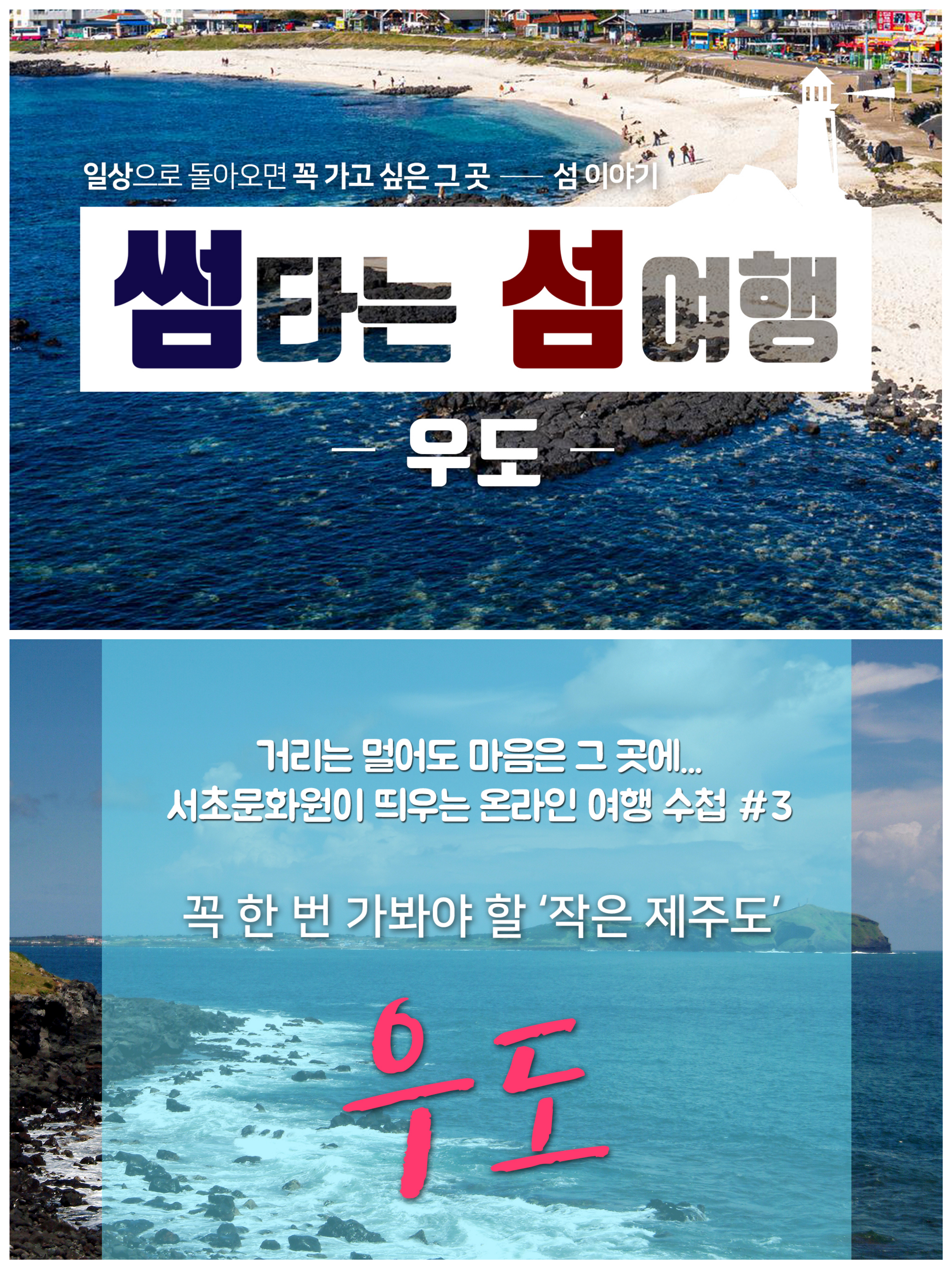 썸타는 섬여행 '우도' 페이지 정보 작성자 서초문화원 작성일20-07-24 18:16 조회3,429회 댓글0건 관련링크 이전글 다음글 목록 본문 행사명 썸타는 섬여행 '우도' 일시 서초문화원이 띄우는 온라인 여행수첩 #3 장소 꼭 한 번 가봐야 할 '작은 제주도' / 우도 공연정보 ▶보러가기http://pf.kakao.com/_tprxlT/54243052 언론보도 이전글 다음글 목록