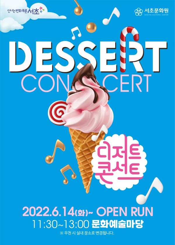 디저트 콘서트 페이지 정보 작성자 서초문화원 작성일22-07-26 17:01 조회3,749회 댓글0건 관련링크 이전글 다음글 목록 본문 행사명 디저트 콘서트 일시 2022.06.14.(화) ~ OPEN RUN / 11:30~13:00 장소 문화예술마당 or 서초문화예술회관 아트홀(우천시) 공연정보 언론보도 이전글 다음글 목록