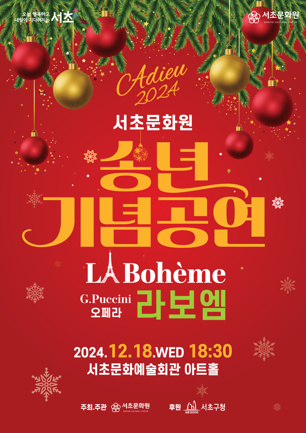 서초문화원 <2024 송년기념공연> 페이지 정보 작성자 서초문화원 작성일24-12-06 10:06 조회1,455회 댓글0건 관련링크 이전글 다음글 목록 본문 행사명 서초문화원 <2024 송년기념공연> 일시 2024.12.18.(수) 18:30 장소 서초문화예술회관 아트홀 공연정보 <제6회 송년음악회>푸치니 최고의 걸작,'라보엠'젊은 예술가들의 아름답고 슬픈 러브스토리 언론보도 - 이전글 다음글 목록