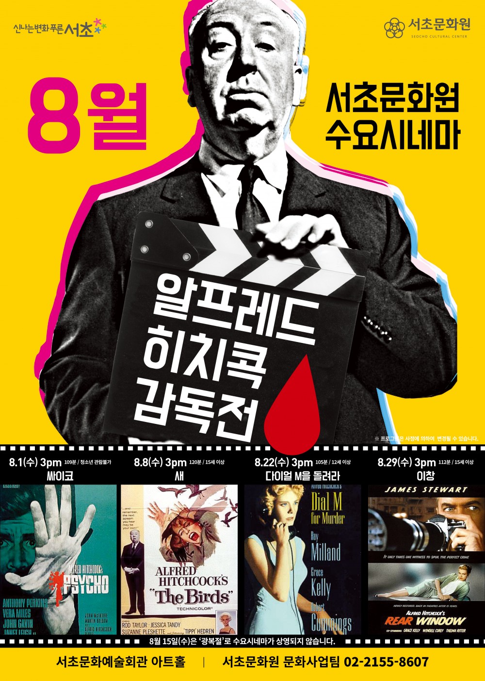 8월 수요시네마 공지 페이지 정보 작성자 서초문화원 작성일18-07-25 19:04 조회17,343회 댓글0건 관련링크 이전글 다음글 목록 본문 . 댓글목록 등록된 댓글이 없습니다. 이전글 다음글 목록