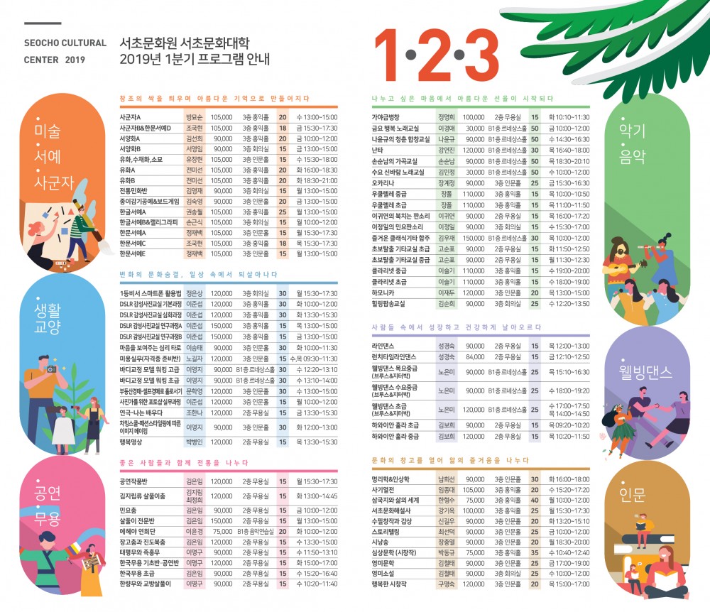 서초문화대학 2019년 1분기(1월, 2월, 3월) 수강신청