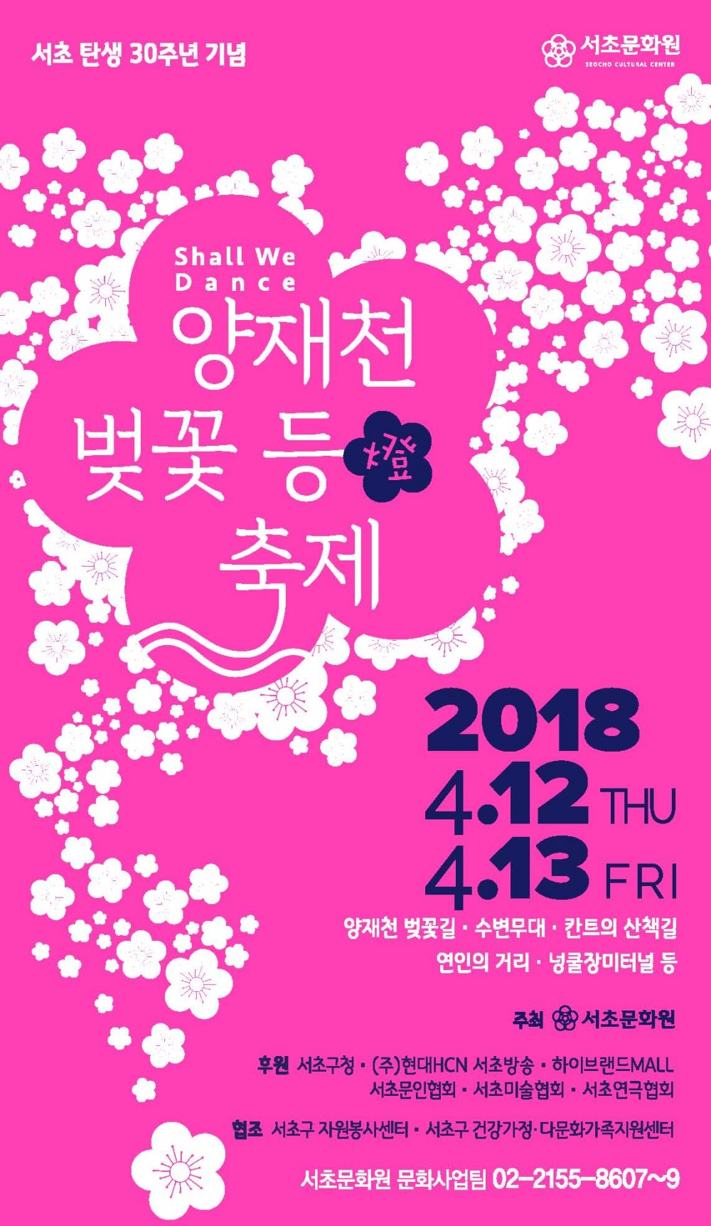 2018 양재천 벚꽃 등 축제 4월 14일 우천시 안내 페이지 정보 작성자 서초문화원 작성일18-04-14 조회19,195회 댓글0건 관련링크 이전글 다음글 목록 본문 안녕하세요. 서초문화원입니다.양재천 벚꽃 등 축제는 오늘(14일) 우천으로 인해오후 3시 이후 부터 아트플리마켓, 푸드트럭, 체험프로그램, 버스킹공연이 진행됩니다.양재천 벚꽃 등 축제는 내일(15일)까지 이어집니다. 많은 관심 부탁드립니다.감사합니다~^^ 댓글목록 등록된 댓글이 없습니다. 이전글 다음글 목록