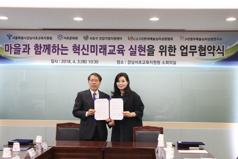 2018년 4월 3일(화) 서초문화원(원장 박기현)과 강남서초교육지원청(교육장 한상윤)은 마을과 함께 하는 혁신미래교육 실현을 위한 업무협약을 체결하였습니다.