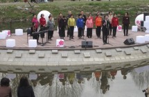 무대위 합창단과 물위에 …