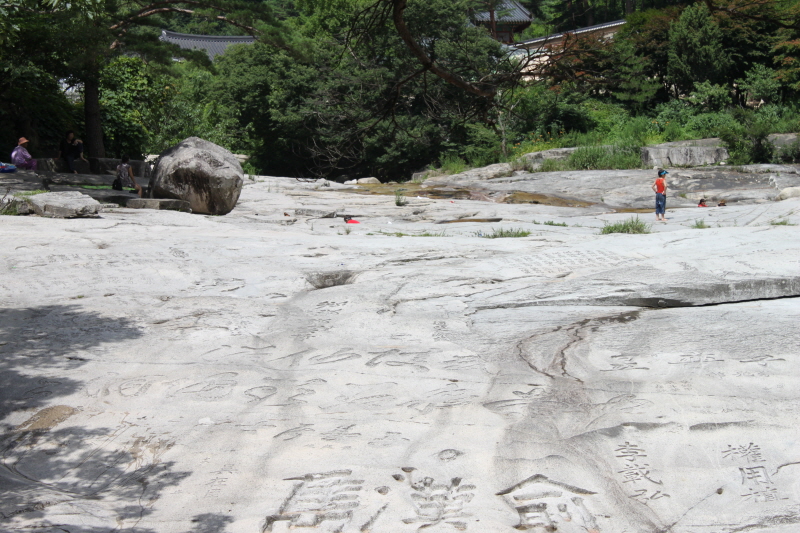옛 풍월객들이 수도 없이 무릉반석을 찾았으며 이름을 천추에 남기려는 선비들은 이 반석에 이름을 새겼다.