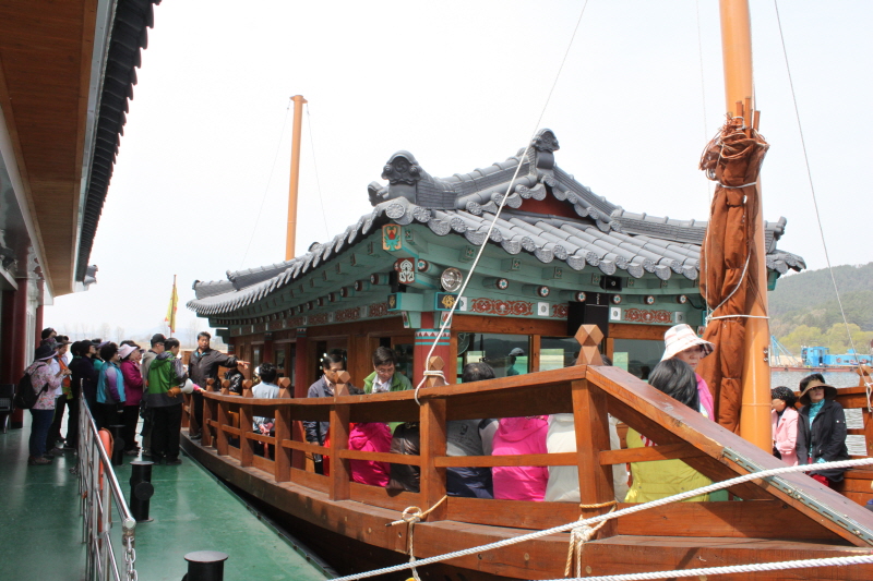낙화암과 고란사안에 있는 고란정의 약수물을 음미한 후 황포돗배에 탐승중.