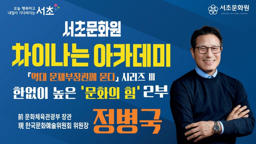 [차이나는 아카데미] '한없이 높은 '문화의 힘' 한국문화예술위원회 위원장 정병국 2부 페이지 정보 작성자 서초문화원 작성일24-12-06 15:31 조회2,673회 댓글0건 관련링크 이전글 다음글 목록 본문 서초문화원의 차이나는 아카데미 역대 문체부장관께 묻다 시리즈 3탄! 前문화체육관광부 장관, 한국문화예술위원회 정병국 위원장이 전하는 '한없이 높은 문화의 힘' '서초의 문화를 디자인하다' 서초문화원 댓글목록 등록된 댓글이 없습니다. 이전글 다음글 목록