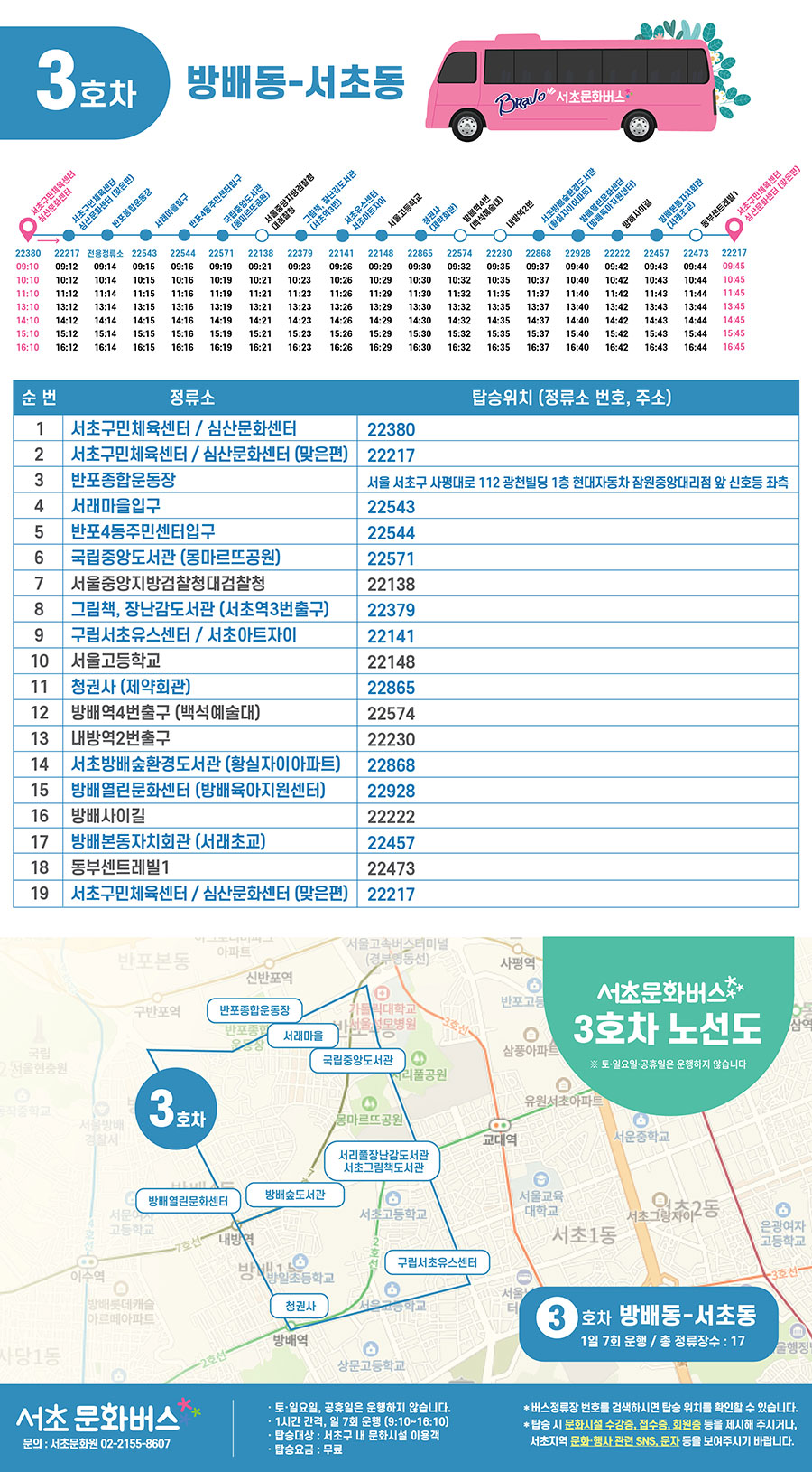 HOME > 서초문화버스 > 3호차(방배·서초동)